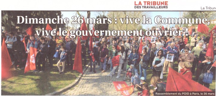 Le 26 mars, le Parti ouvrier indépendant démocratique rendra hommage à la Commune de Paris, au mur des Fédérés où sont tombés les derniers communards. Premier gouvernement ouvrier de l’histoire, la Commune de Paris, en moins de cent jours, a jeté les bases d’une authentique démocratie sociale et politique fondée sur l’égalité des droits.