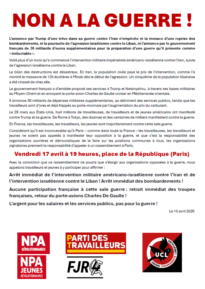 NPA Révolutionnaires, NPA Jeunes, Parti des Travailleurs, FJR, UCL
