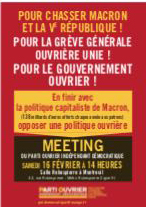 Pour la grève Générale, pour le gouvernement ouvrier, Meeting POID samedi 16 février à 14h à Montreuil